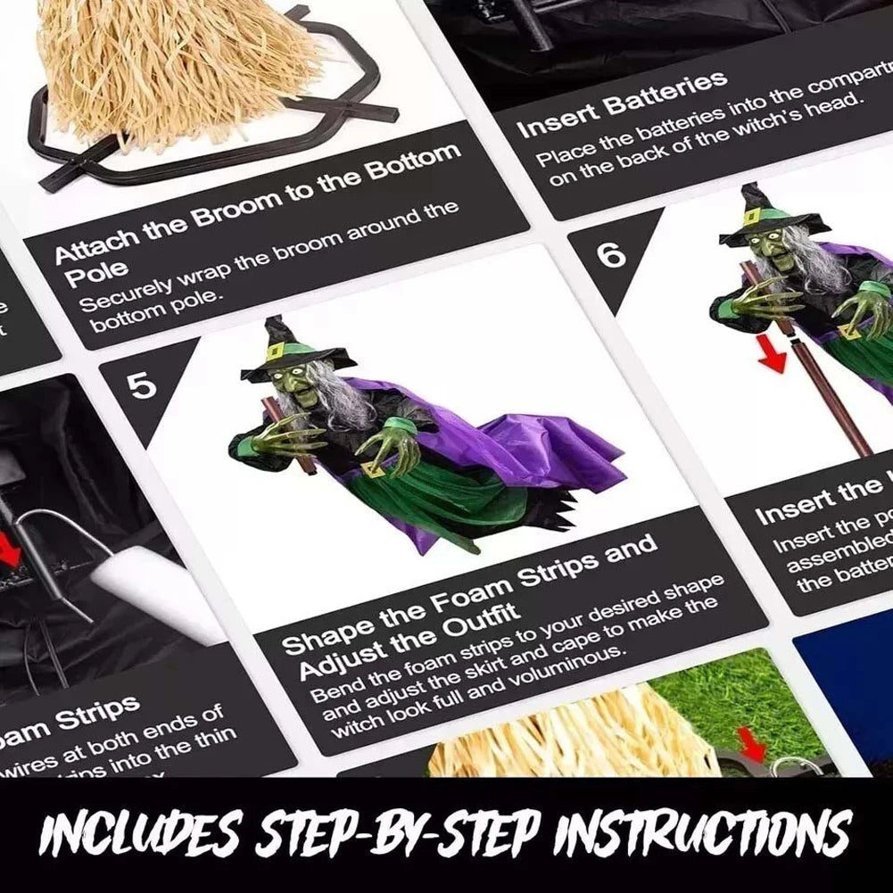 4.Versatile Indoor and Outdoor Display: Showcase this animated witch decor indoors or outdoors with ease. Whether placed in your garden, on the lawn, or inside your home, the flying witch creates a spine-chilling atmosphere wherever it's displayed.