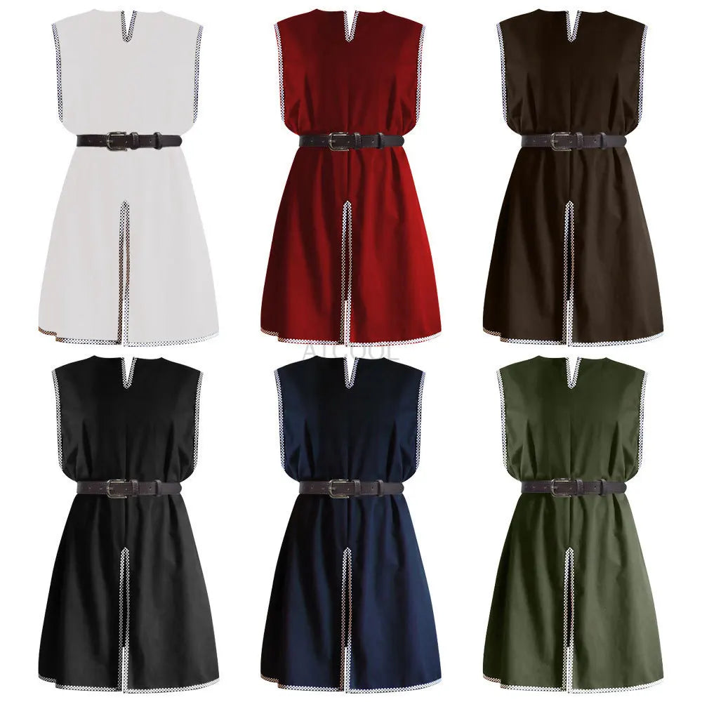 Men's Medieval SleevelessTunic Top Viking Norman Warriors Jerkin Costume Larp Outfit Long Shirt Vest Halloween For Adult