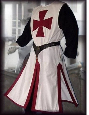 Plus Size Men Medieval Cosplay Robes Templar Knight Crusader Surcoat Long Sleeve Short Tops Reenactment Costume
